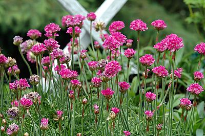 Armeria 'Bloodstone'Bloodstone sea thriftCODE: 064-0001ZONE: 3a PRICE: $8.00 POT SIZE: 4.5"sq x 5.0", 1004 ml Probably the result of a cross between A. plantaginea and A. maritima, 'Bloodstone' has bright red flowers and is a slightly larger selection than our commonly available A. maritima selections. The flowers are probably the most ornamental aspect of this plant, lasting months at a time and drawing butterflies in droves. But the foliage is also ornamental -- grass-like and evergreen, it forms dark green tufts that last year-round. I like to use this as a single accent plant in flower beds, but it also works quite well in groups or along the border. Since it holds its shape so well it can also be used to create geometric designs in the garden. Make sure that it gets a fair amount of light and drains well or the crowns will start to rot. It's an extremely drought tolerant plant, so plant it in dry places where its lush color will be appreciated.![]() (c) 2007 Christopher P. Lindsey |